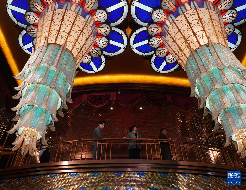 1月6日在上海影视乐园(车墩影视基地)拍摄的电视剧《繁花》中的至真园酒家。乐园复原了剧中的画面和场景,供游客们沉浸式“打卡”。