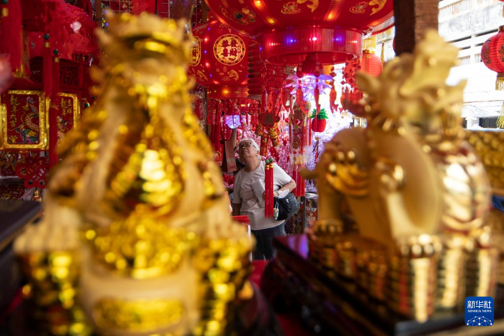 随着龙年春节临近,印尼雅加达民众开始采购年货迎接节日的到来。