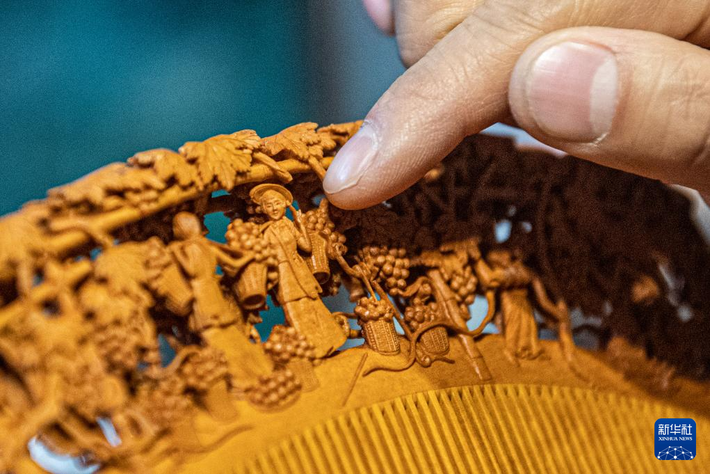 俞达洪是“谭木匠木梳传统制作技艺”非遗项目重庆万州区级代表性传承人,俞达洪潜心于木梳雕刻创作30余年,在国家级和省部级行业展评中获得多个奖项。如今,俞达洪逐步把个人积累的手艺向徒弟传授。“我作为传承人,有义务把这个技艺传承下去。”俞达洪说。