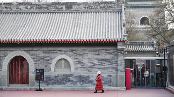 乘客走过牡丹园地铁站内的壁画(1月20日摄)。