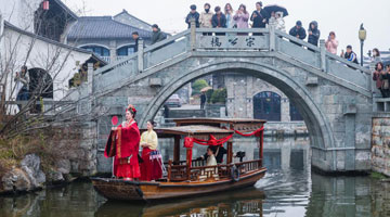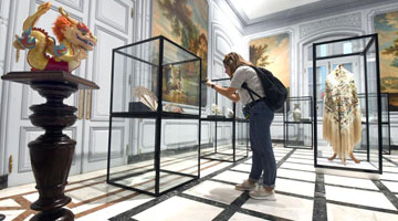 乘客在磁器口地铁站内观看“红楼梦”壁画(1月20日摄)。