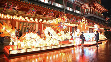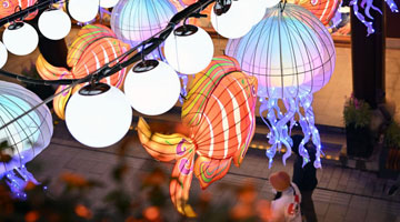 这是平安里地铁站内的中国风灯饰(1月20日摄)。
