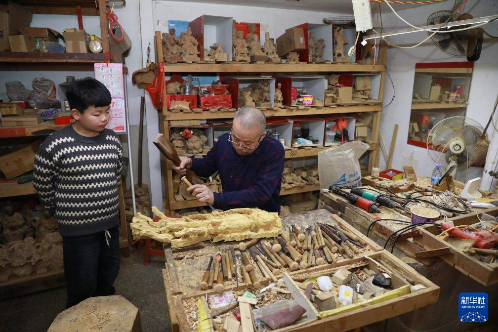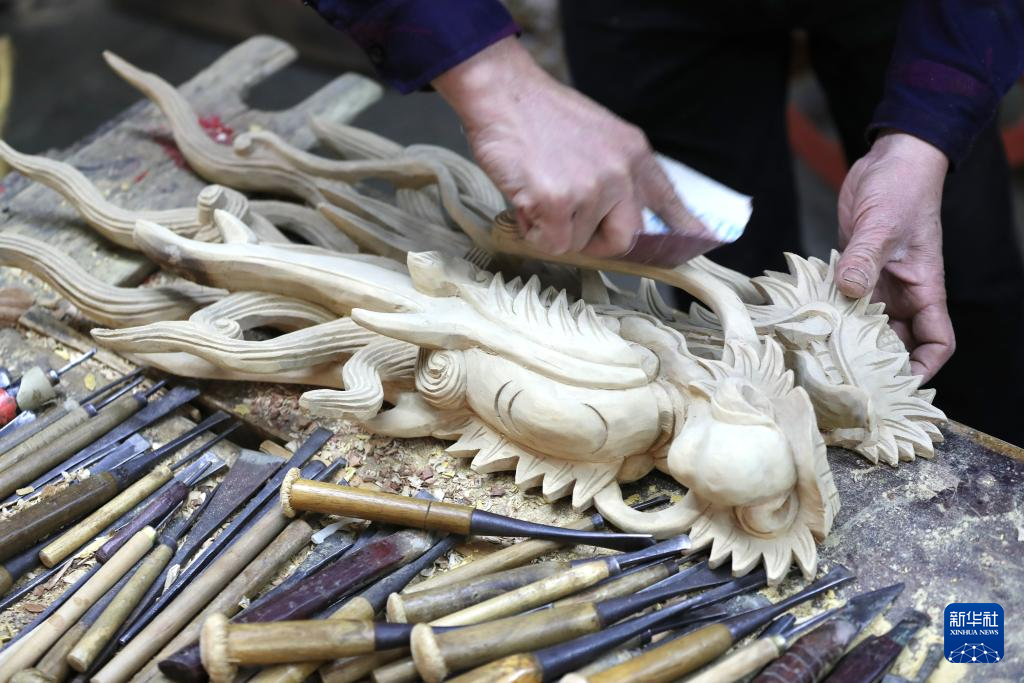 龙年春节将至,在福建省晋江市东石镇潘山村的木雕厂内,工人们加紧赶制出货订单,一件件精美的龙柱、龙头等庙宇木雕产品在工人们的精雕细琢中诞生。潘山庙宇木雕以庙宇雕刻为表现方式,历史悠久,工艺精湛,产品主要在海峡两岸销售,同时销往新加坡、印度尼西亚、菲律宾等东南亚国家。2021年,以潘山庙宇木雕为代表的泉州木雕成功入选第五批国家级非遗名录。