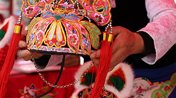 1月29日,在南皮县冯家口镇车官屯村,民间艺人在排练沧州落子前佩戴头饰。