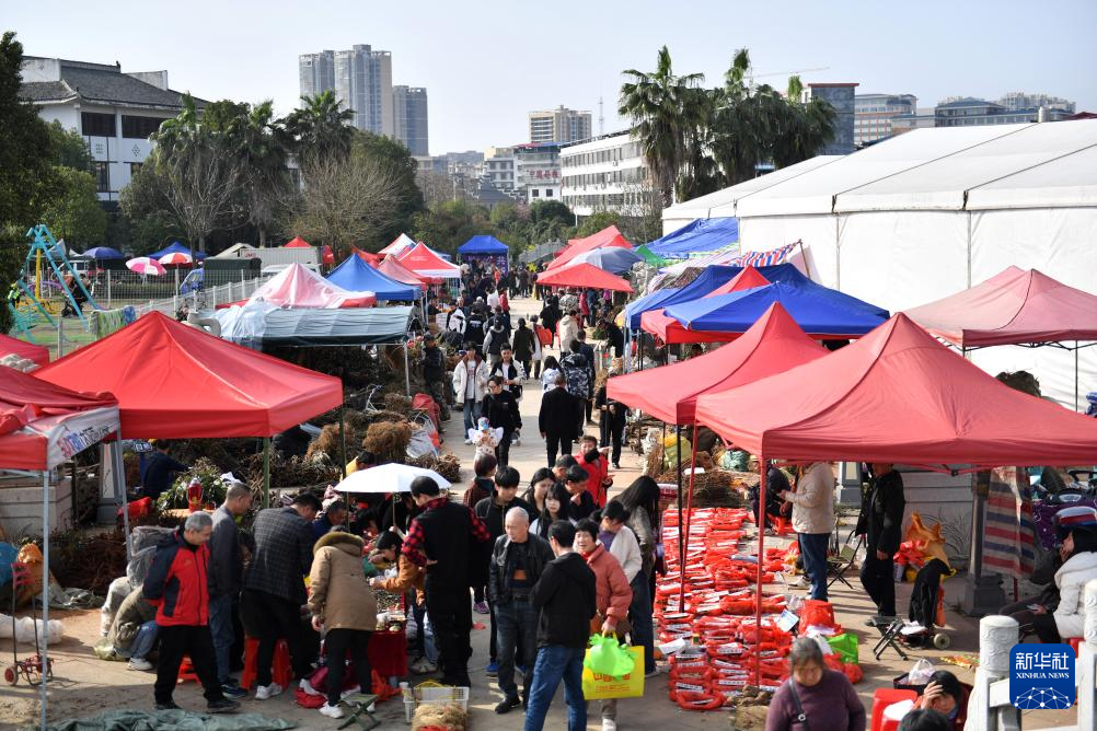这是3月20日在安仁县拍摄的中草药和农副产品交易集市(无人机照片)。
