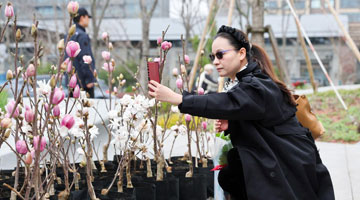 3月30日,人们在徐家汇公园享受春光。