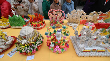 3月30日,在辰山植物园的“城市美育日”活动现场,两名装扮成“花神”的女子在游览“辰山花会”。
