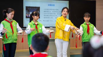 4月14日,学生代表在云南省景洪市参加民族民间传统文化游演。