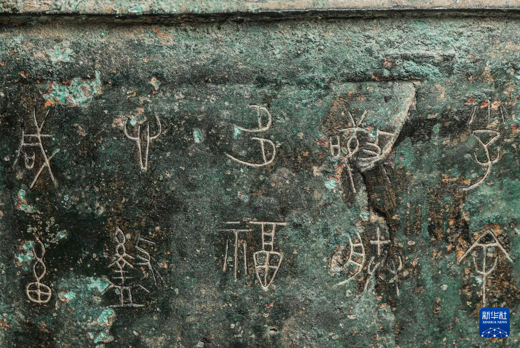 秦公镈(一号镈)铭文“或(国)”字(左上)(2024年1月23日摄)。