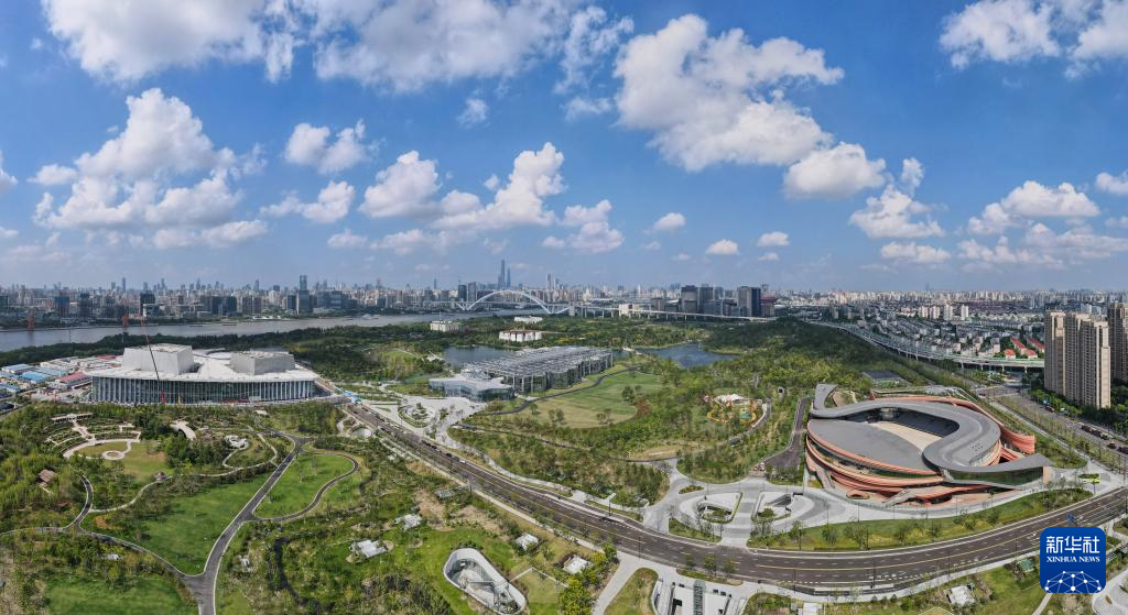9月9日拍摄的上海世博文化公园(无人机照片)。