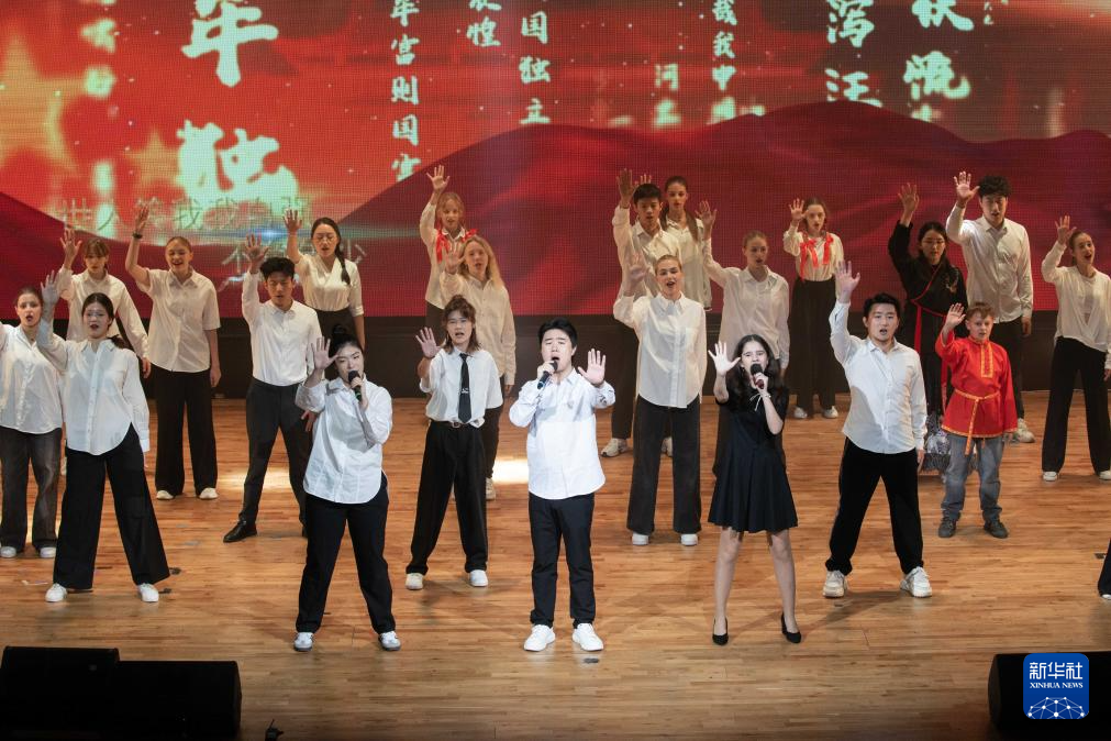 9月22日,在俄罗斯首都莫斯科,中俄青少年表演节目。