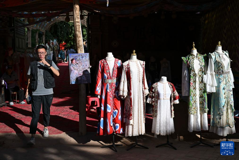 小朋友身着盛装走在新疆鄯善县吐峪沟乡吐峪沟村内(10月6日摄)。
