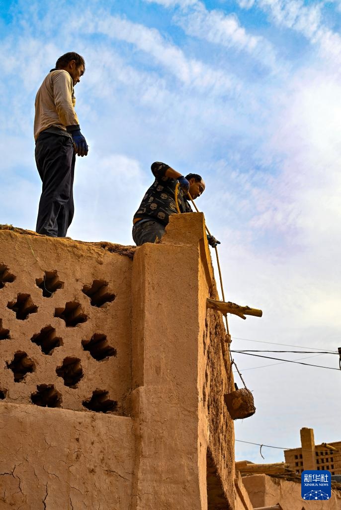 村民在修缮房屋(10月7日摄)。