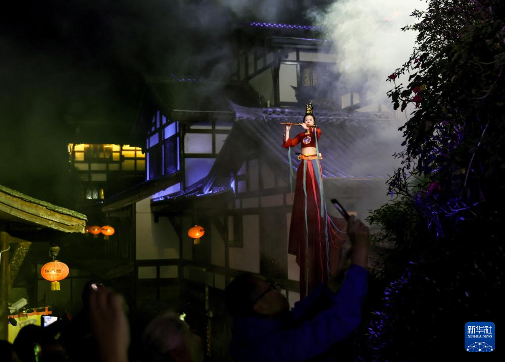 11月5日拍摄的实景演出《蜀道盛世》中的“飞天”。