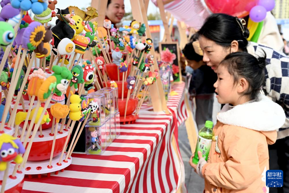 11月24日,家长带着小朋友在萧县“十月古会”上游玩。