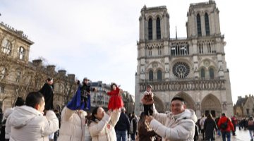 12月20日,在法国巴黎中国文化中心,法国艺术家雷米·阿龙在“心境映象——荣宝斋当代艺术展暨木版水印特展”开幕式上致辞。