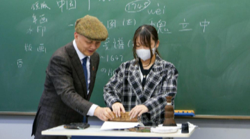 12月20日,在法国巴黎中国文化中心,嘉宾在“心境映象——荣宝斋当代艺术展暨木版水印特展”上体验木版水印制作技艺。