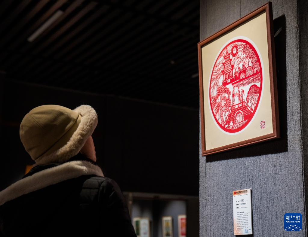 12月26日,游客在昆明市博物馆参观剪纸作品。