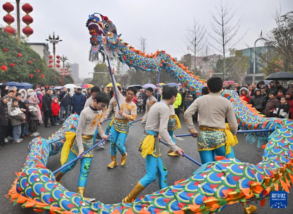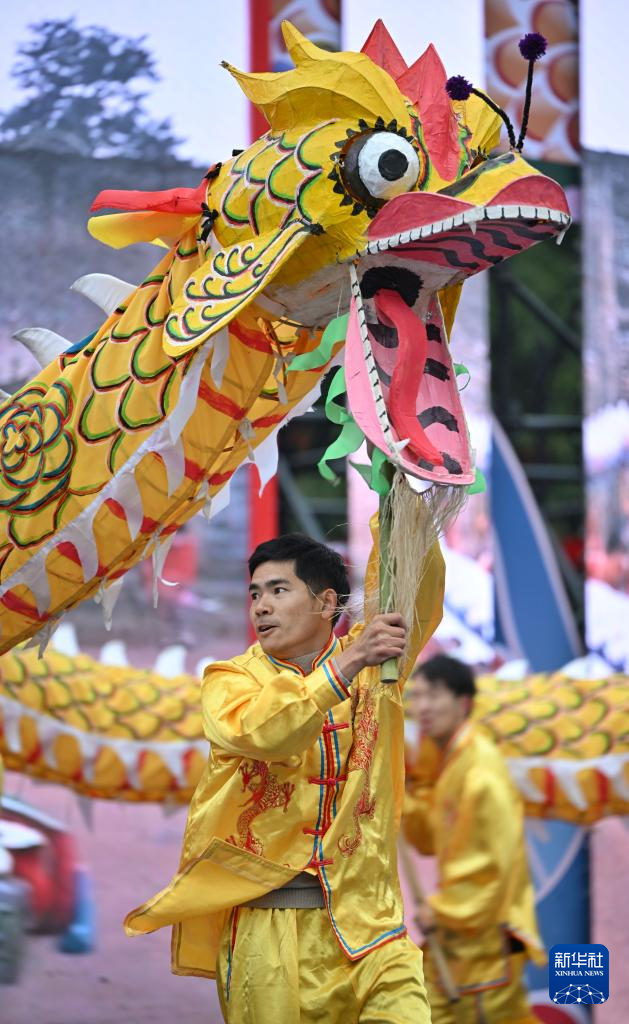 2月12日,来自泸县方洞镇的龙舞队在表演泸州雨坛彩龙。泸州雨坛彩龙是四川泸县的传统龙舞,2006年被列入第一批国家级非物质文化遗产代表性项目名录。