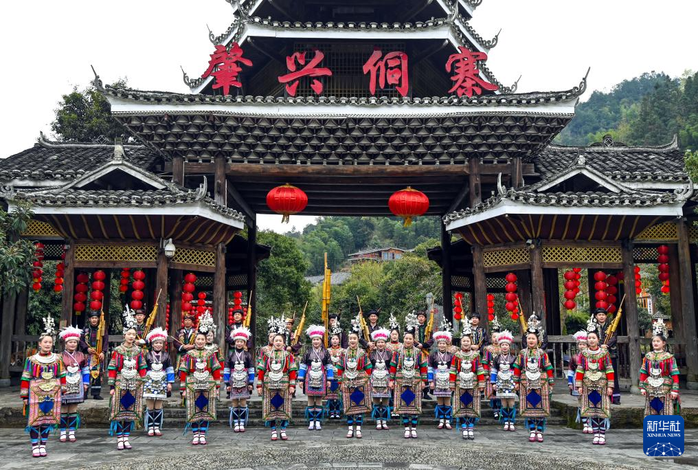 3月18日,侗族群众在贵州省黎平县肇兴侗寨给游客演唱侗族大歌。