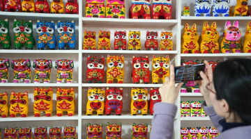 3月24日,府学胡同小学学生在书画摄影展开幕式上展示手工作品。