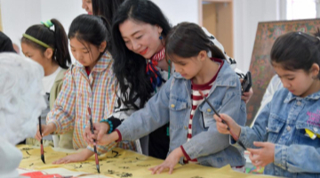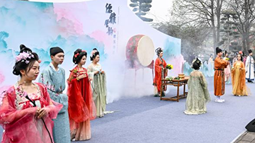 3月25日,游客在云南省丽江市丽江古城东巴文字墙前拍照。