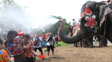 每年4月13日至15日是泰国传统新年宋干节,也称泼水节,人们以互相泼水的方式表达迎新祝福。