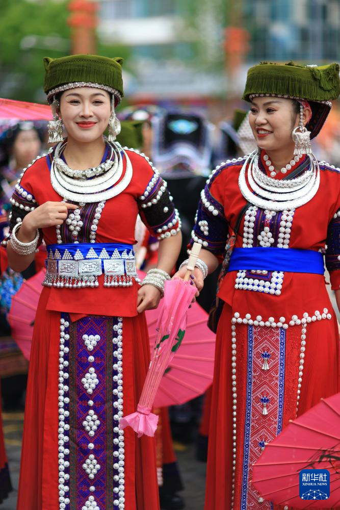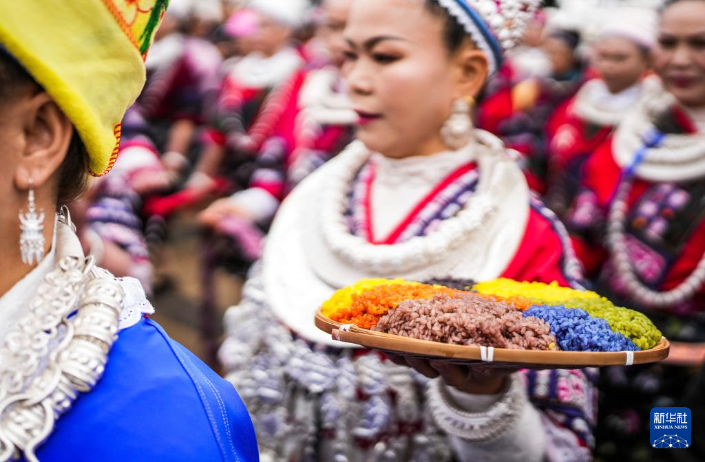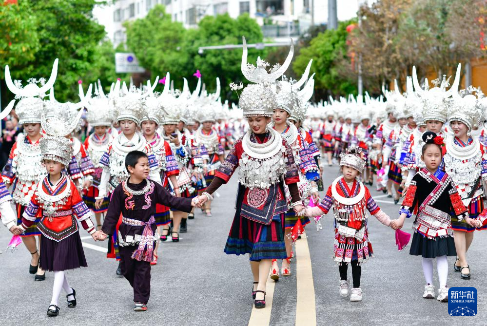 当日,在贵州省黔东南苗族侗族自治州台江县,万余名苗族群众身着盛装,庆祝一年一度的姊妹节。“苗族姊妹节”是贵州台江县苗族同胞的传统节日,2006年被列入第一批国家级非物质文化遗产名录。
