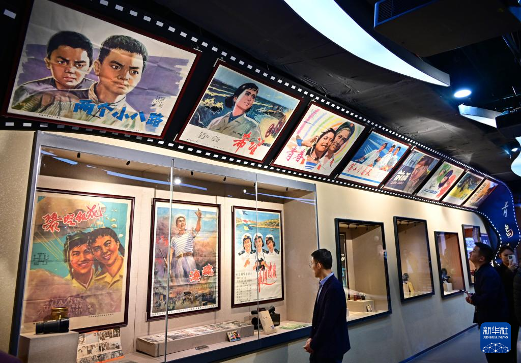 4月28日,观众在青岛电影博物馆老电影海报展区参观。