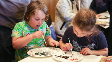 4月28日,在宁乡市炭河古城景区,工作人员(右一)向学生发放农耕实践用的秧苗。