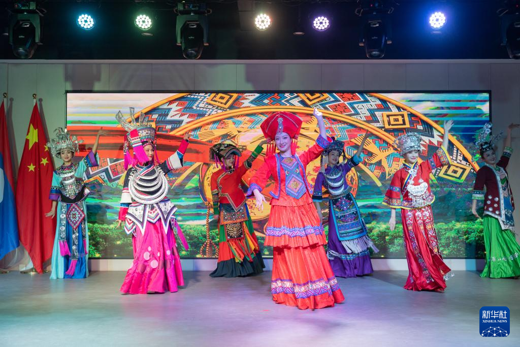 这是5月16日在老挝首都万象拍摄的“茶和天下·雅集”暨广西文化旅游推介会开幕式现场。
