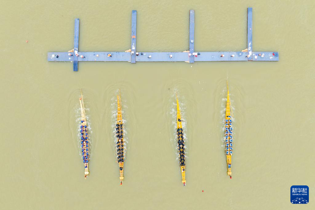 当日,“国家非遗道州龙船传统赛”在湖南永州道县潇水河水域开赛,吸引了当地近200支龙舟队5000余人同台竞技,奋楫竞渡,迎接端午节的到来。