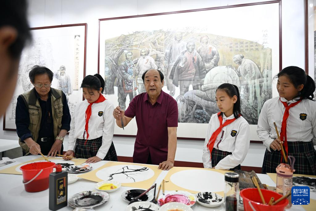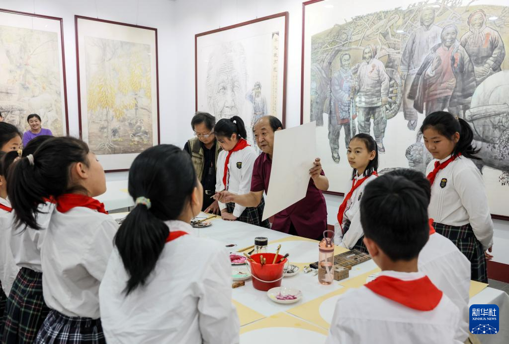 今年是中国人民抗日战争暨世界反法西斯战争胜利80周年,在沂蒙革命老区山东省日照市莒县,小学生们走进沂蒙画派研究院,学习绘画知识,欣赏绘画作品,聆听画作背后的沂蒙故事,感受沂蒙精神,接受爱国主义教育。