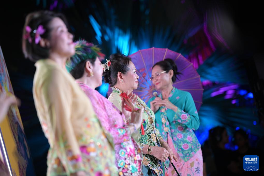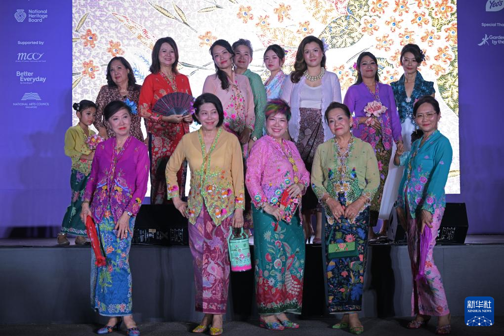 5月25日,娘惹身穿传统服饰卡峇雅在新加坡滨海湾花园举行的新加坡文化遗产节活动中走秀。