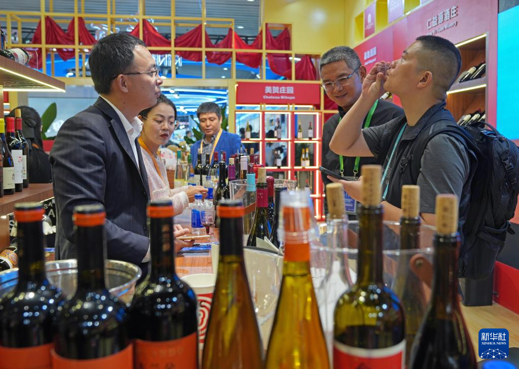 11月8日,参观者在第八届进博会宁夏馆品鉴葡萄酒。
