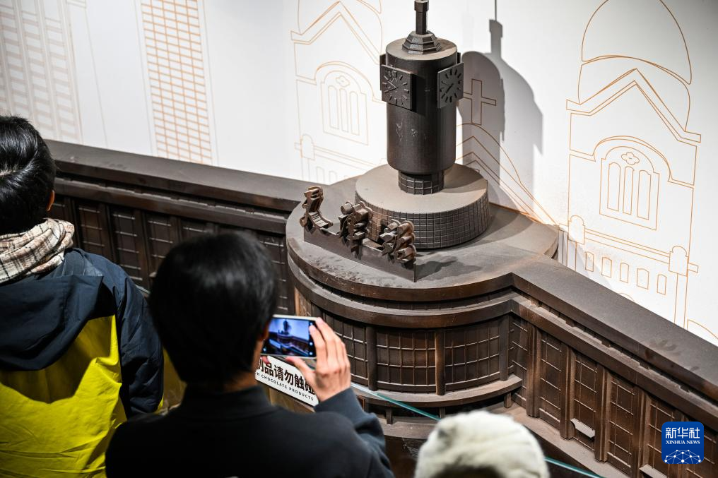 近日,位于天津市和平区金街步行街的天津巧克力博物馆正式开放。馆内陈列20余件巧克力雕塑作品,使用巧克力总量达10吨,由雕塑师纯手工打造。巧克力雕塑作品中既有“天津之眼”摩天轮、天津站等城市地标,又有哪吒闹海等故事场景,吸引众多游客参观打卡。