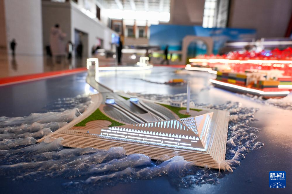 这是在“筑基强国路——中国制造‘十四五’成就展”上展出的深中通道模型(12月29日摄)。