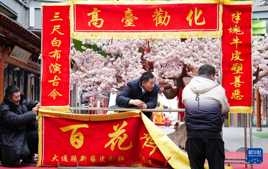 幕布轻挂,灯影流转,河湟皮影的独特唱腔在青海省西宁市城北区“冰雪烩”活动现场悠扬传开。俯身于幕布后翻飞皮影的,是河湟皮影戏国家级非物质文化遗产代表性传承人周邦辉。这已是他和皮影社今年在西宁“进城”演出的第5场。