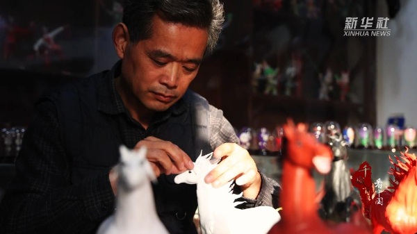 新春将至,在山东省临沂市沂南县红石寨非物质文化遗产博物馆,面塑艺人左安胜正全神贯注地捏制一匹匹色彩明艳、神采飞扬的骏马。