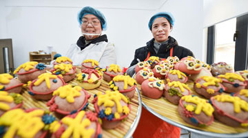 2月4日,在天津杨柳青画社,天津杨柳青画社第四代彩绘传承人王艳绘制马年年画底稿。