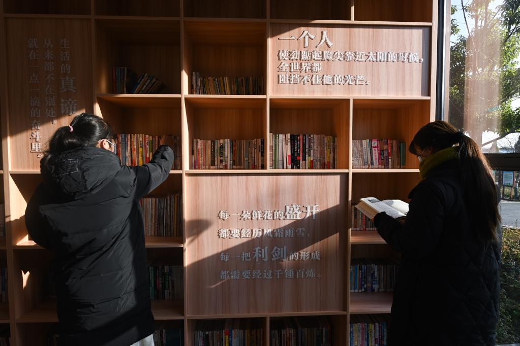 12月13日,村民在浙江省湖州市吴兴区道场乡红里山村新建的农家书屋内阅读。