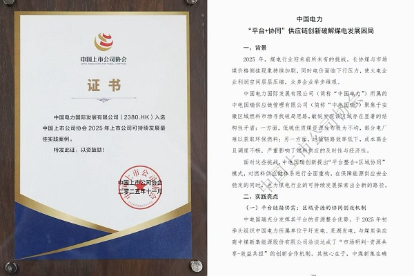 近日,国家电投中国电力《“平台+协同”供应链创新破解煤电发展困局》ESG实践案例,成功入选中国上市公司协会“2025年上市公司可持续发展最佳实践案例”。