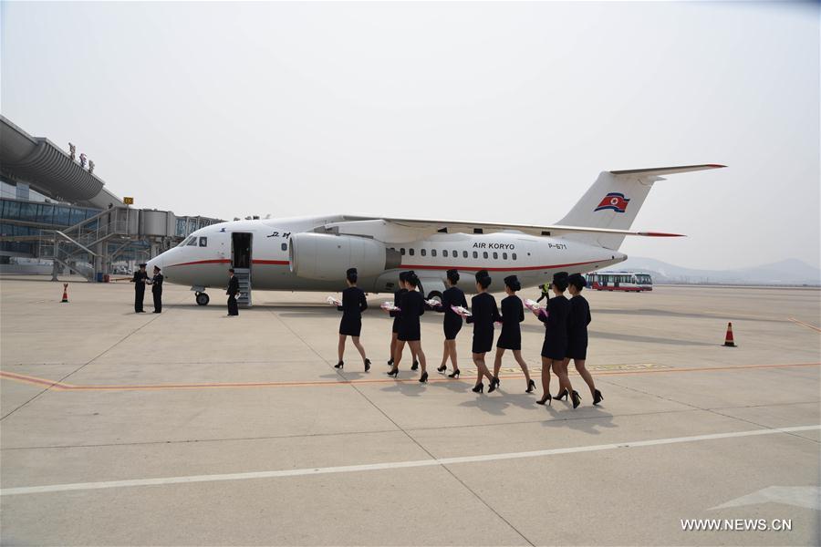 Pyongyang International Airport staff prepare to welcome passengers from Dandong as they arrive in Pyongyang, Democratic People's Republic of Korea (DPRK), March 28, 2017. Pyongyang and northeast China's city of Dandong Tuesday opened a twice weekly charter flight. (Xinhua/Cheng Dayu)