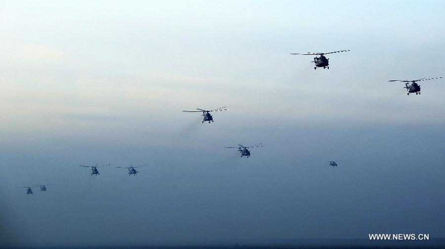 Helicopters of a PLA ground force have a training on Jan. 5, 2018. (Xinhua photo)