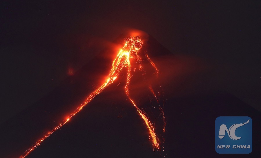 MANILA, Jan. 16 (Xinhua) -- The Philippines placed Albay province under a state of calamity on Tuesday as glowing red lava continues to creep down the slopes of Mayon volcano.