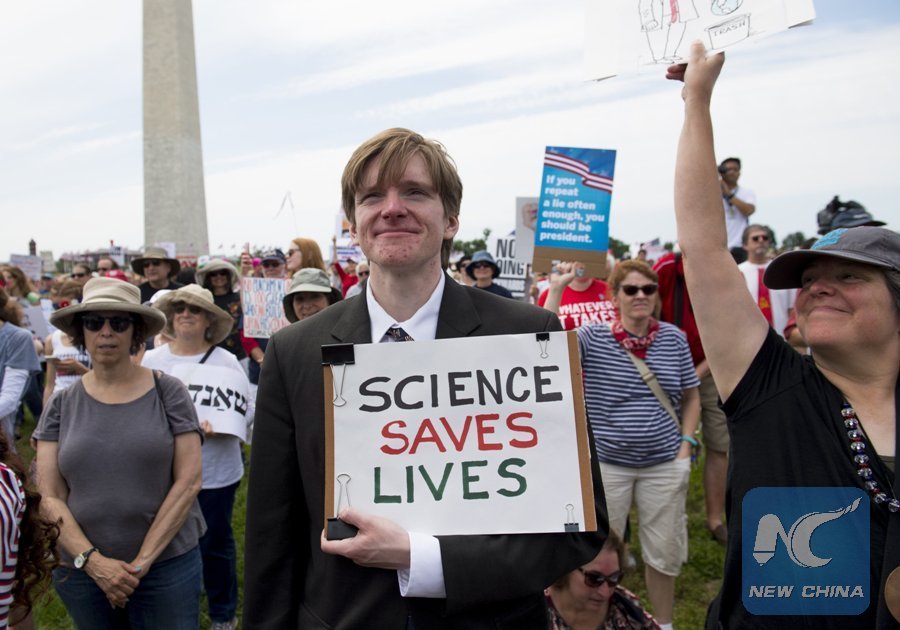 WASHINGTON, Jan. 19 (Xinhua) -- Donald Trump's fray with American scientists, which has been noted by Science magazine, is one defining aspect of his first year in the White House.