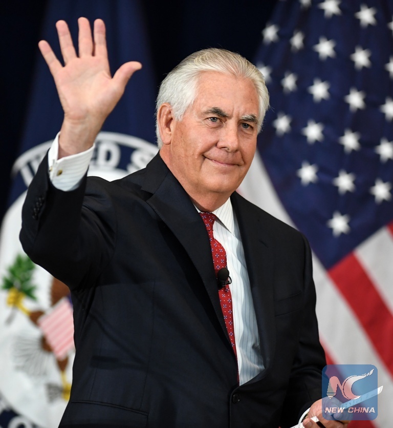 File photo taken on May 3, 2017 shows Rex Tillerson delivering a speech to State Department employees in Washington D.C., capital of the United States. (Xinhua/Bao Dandan)