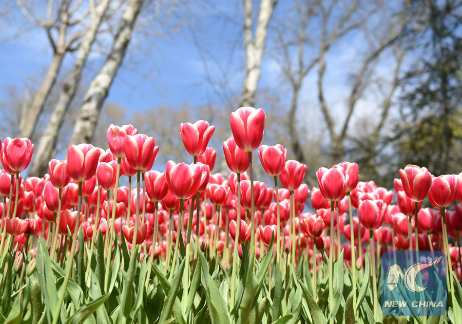 Photo taken on April 6, 2018 shows tulips at the Emirgan park in Istanbul, Turkey. Blossoming tulips have brought spring to Istanbul recently. (Xinhua/He Canling)