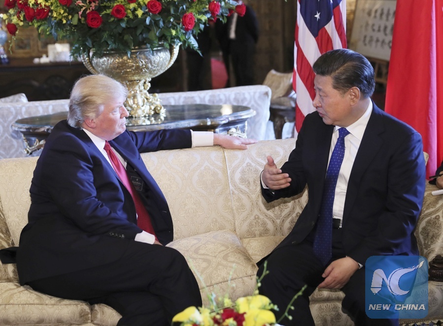 Xi Jinping meets with his U.S. counterpart Donald Trump in the latter's Florida resort of Mar-a-Lago in the United States, April 6, 2017. (Xinhua File Photo/Lan Hongguang)