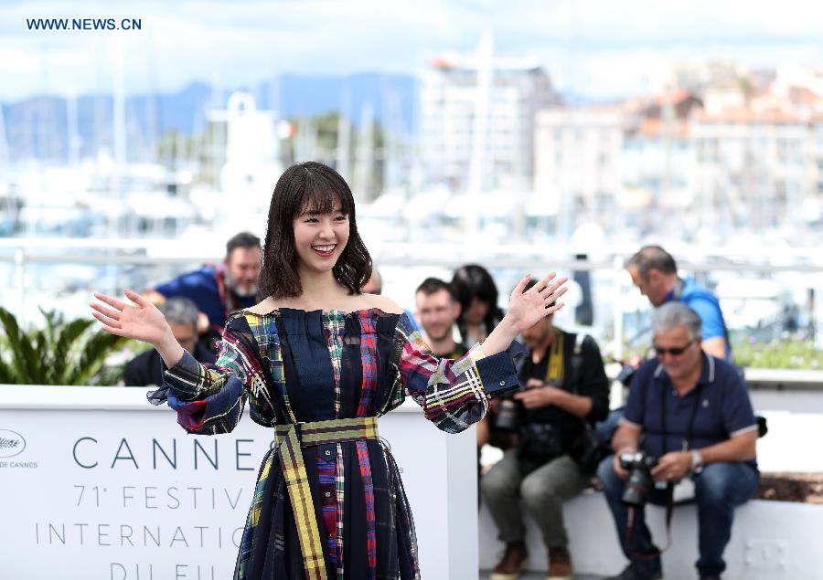 Actress Erika Karata of the film "Asako I & II (Netemo Sametemo)" poses during a photocall at the 71st Cannes International Film Festival in Cannes, France, on May 15, 2018. The 71st Cannes International Film Festival is held from May 8 to May 19. (Xinhua/Luo Huanhuan)